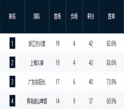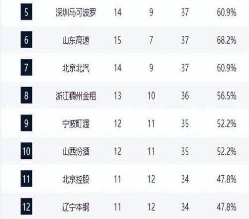 青岛队强势崛起,主场击败广州队后以14胜9负升至第4,成为本赛季最大黑马之一。与之同战绩的深圳队则在加时赛惜败,错失反超良机,两队缠斗激烈,第4至第8名的竞争已进入白热化。