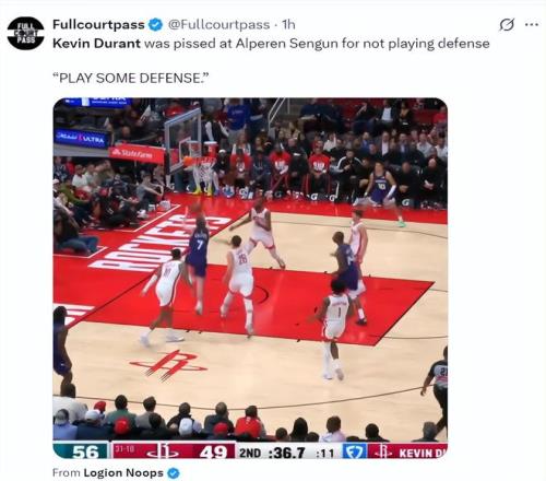 休媒炮轰火箭比赛令人作呕:毫无战意该感到羞愧!KD吐槽申京防守