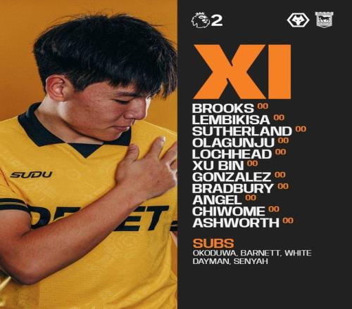 狼队U21vs伊普斯维奇U21:徐彬首发迎留洋首秀
