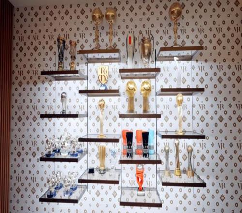 对,这是我家。这里是我在马德里拿到的一些成就,我在巴西也有一部分奖杯。