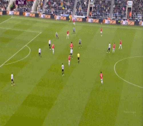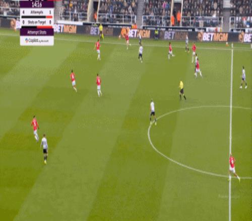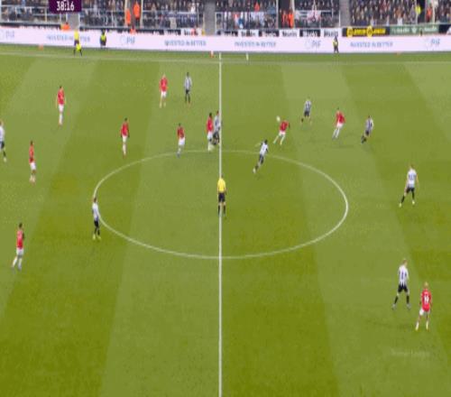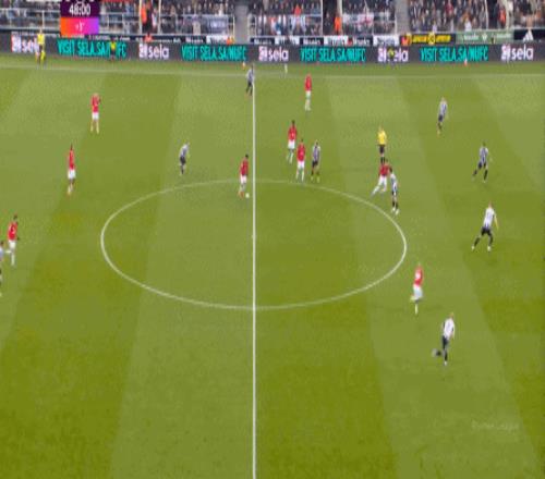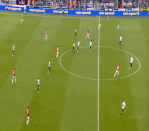 连续两场迎来人数上的优势,这本来是极为有利于曼联的发挥,库尼亚随后在特里皮尔身上更是再次打出明显优势,但被纽卡堵住: