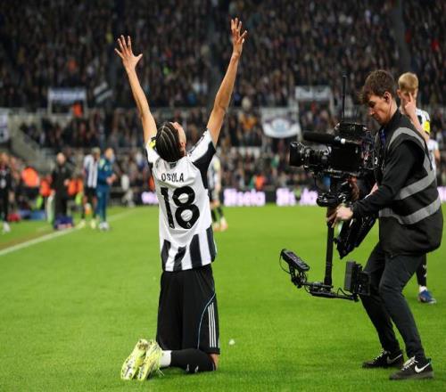 随后,已经少打一人的纽卡补上一点劣势,戈登先从卡塞米罗脚下断球,然后回到熟悉的左边路,成功制造了点球,并且顺利罚中:
