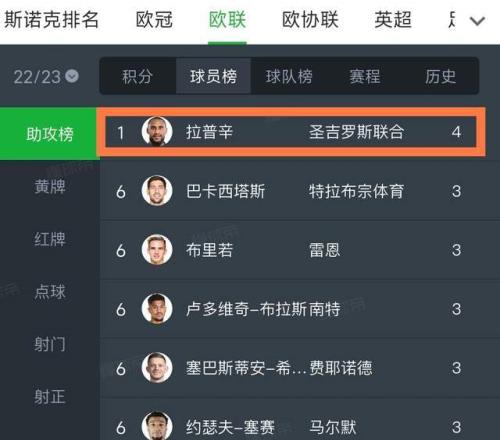 第二个,拉普辛还是欧联杯助攻王,22到23赛季,他在欧联杯完成4次助攻,并列那个赛季欧联杯的助攻王,而且也是欧联杯成功过人榜第2名,第1名是谁呢?就是现在身价1.1亿欧的利物浦球星维尔茨。