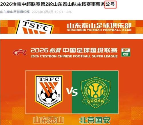 3月14日(星期六)15:30,在2026赛季中超联赛第2轮的一场焦点对决中,山东泰山将坐镇主场济南奥体中心体育场,迎战北京国安。3月8日,山东泰山足球俱乐部发布了这场比赛的票务公告。根据公告,今年京鲁大战的票价,比上赛季整体进行了下调。