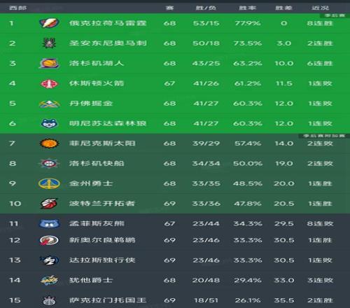 北京时间3月17日,今日的NBA常规赛结束了所有比赛,我们看看西部的战况和最新积分榜变动,主要的信息是:湖人100-92险胜火箭,马刺119-115战胜快船,太阳112-120不敌凯尔特人,勇士125-117战胜奇才,开拓者114-95篮网,独行侠111-129不敌鹈鹕,灰熊107-132惨败公牛!