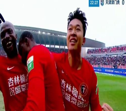 在姆本扎打入辽宁铁人队史中超处子球之后,铁人球员疯狂庆祝。在辽宁铁人破门之后,津门虎成为本赛季唯一一支0进球的中超球队。