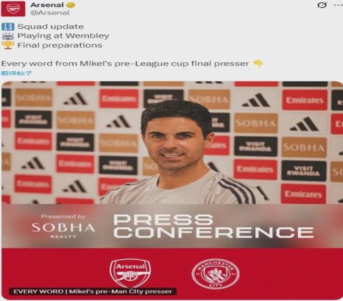 阿尔特塔出席了赛前新闻发布会,并谈到了伤病等问题。