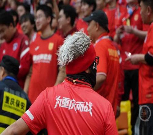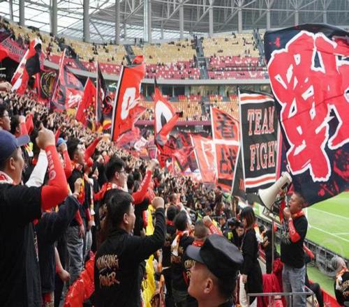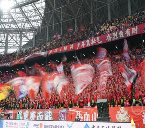 比赛还未开始,重庆球迷在龙兴足球场开始了热身,在聚集了近1万名铁杆球迷的龙兴足球场南看台,重庆球迷双手举过头顶,开始一边鼓掌一边唱球迷歌,旗手也开始挥舞旗帜进行预演,希望在今晚打造最棒的赛场氛围。
