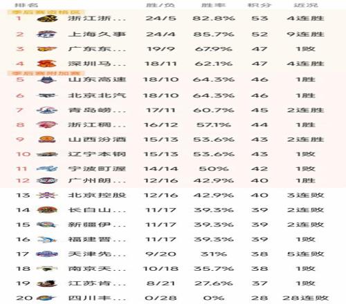 CBA最新积分榜