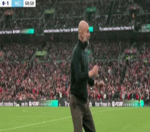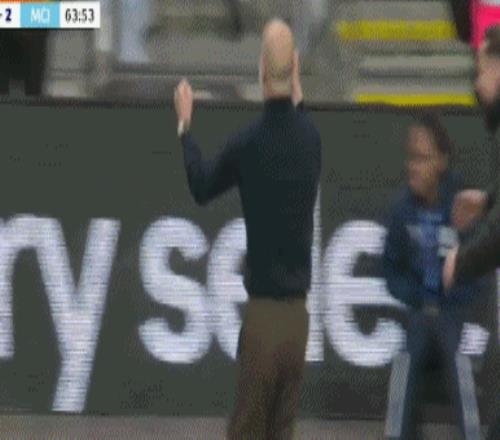 当曼城在下半场第60分钟依靠凯帕的脱手送礼,由奥莱利打破僵局时。一向儒雅的瓜帅也罕见激动,他振臂怒吼一跃而起,随后激动踹了场边的广告牌。