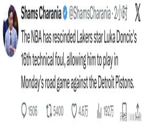 今日,权威记者Shams带来一则重磅消息:NBA官方正式对外宣布,经过联盟办公室严谨细致的审查,决定撤销东契奇与魔术球员比塔泽在昨日比赛第三节1分19秒时所领到的技术犯规!