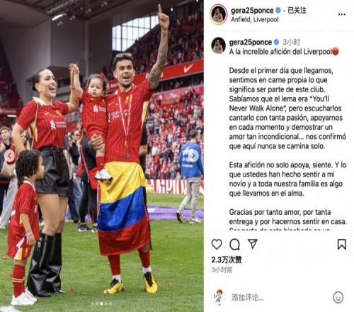 迪亚斯女友社媒:红军球迷是世界上最棒的球迷,我们永远不会独行