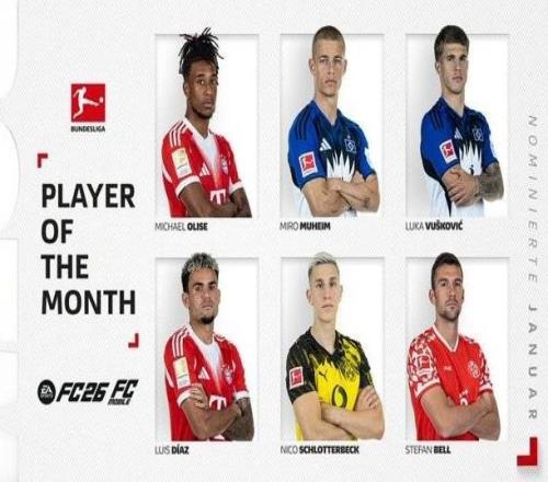 德甲1月最佳球员候选:奥利塞领衔、迪亚斯、施洛特贝克在列