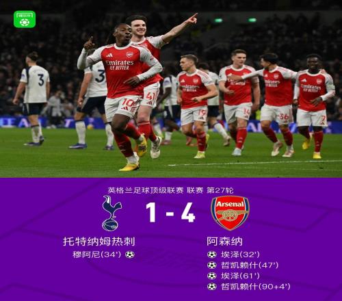 剑南春阿森纳41双杀热刺,哲凯赖什、埃泽双双梅开二度
