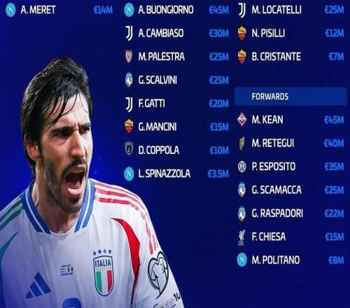 新一期意大利队德转身价榜:巴斯托尼、托纳利8000万欧元第1