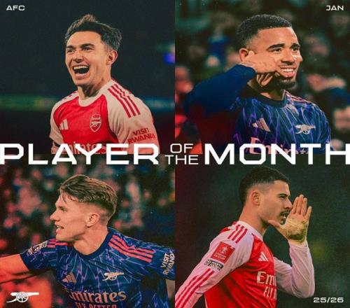 阿森纳1月最佳候选:哲凯赖什、苏比门迪、热苏斯、马丁内利