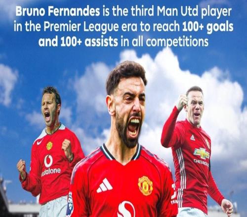 B费达成红魔生涯100助里程碑,成英超时代曼联第四人