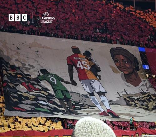 加拉塔萨雷球迷制作Tifo致敬奥斯梅恩已故母亲,球员感动落泪