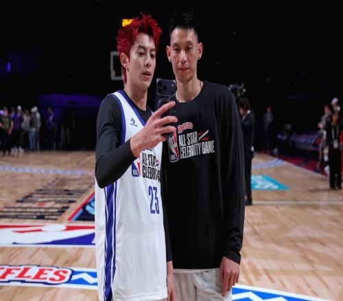 致敬偶像,王鹤棣下快攻接林书豪长传完成上篮,随后霸王步庆祝