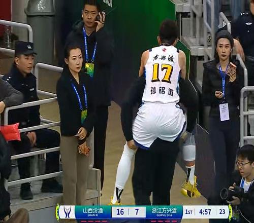 广厦男篮遭重创:孙铭徽崴脚痛苦倒地无法行走被背回更衣室