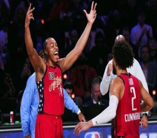 美国星条队4845淘汰世界队,伦纳德13中11轰31分,文班亚马19分