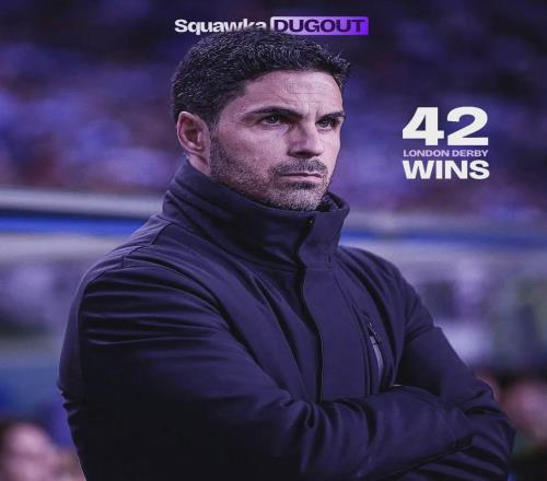 阿尔特塔英超伦敦德比取胜42场,追平穆里尼奥仅次于温格
