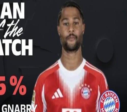 梅开二度,格纳布里当选拜仁vs柏林联合全场最佳球员